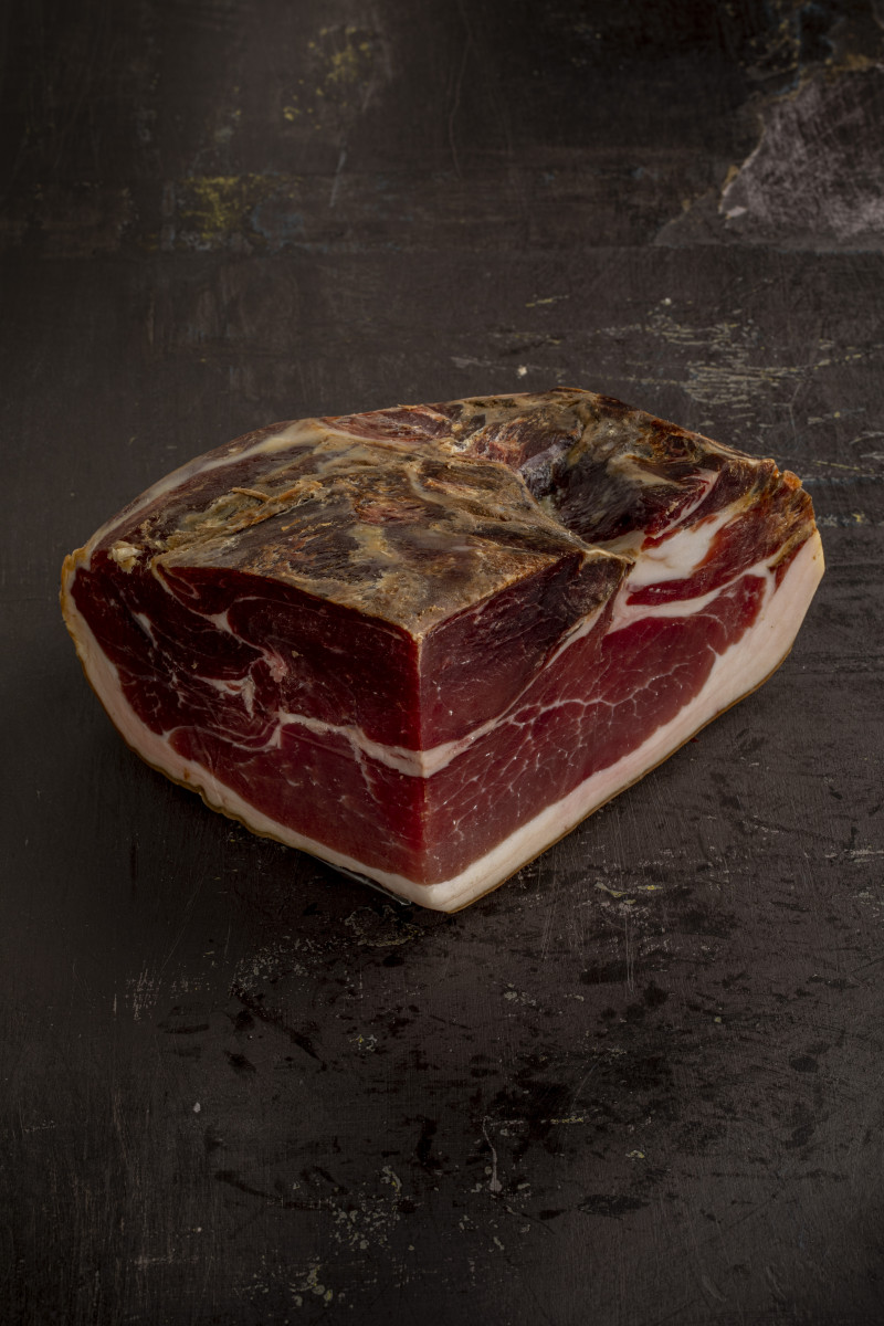 Un jambon sec issu d'une sélection rigoureuse, affiné 12 mois minimum, pour laisser le temps faire son travail et révéler toutes les saveurs de ce produit emblématique de la maison.